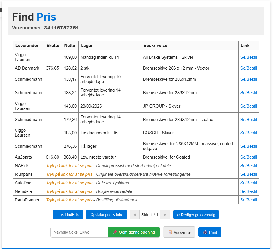 Du får også direkte link til Autodoc,Idunparts og Nemdele (brugte dele).
