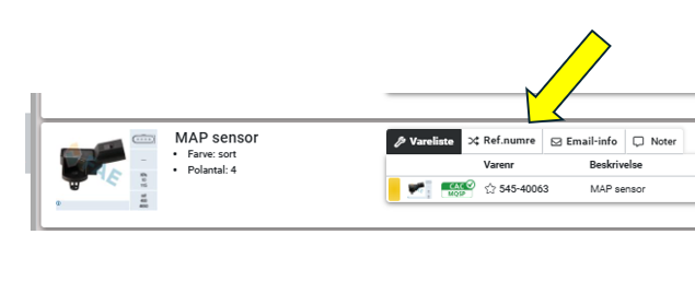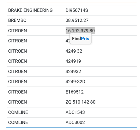Når du finder et varenummer (et originalt varenummer), skal du markere det med musen.